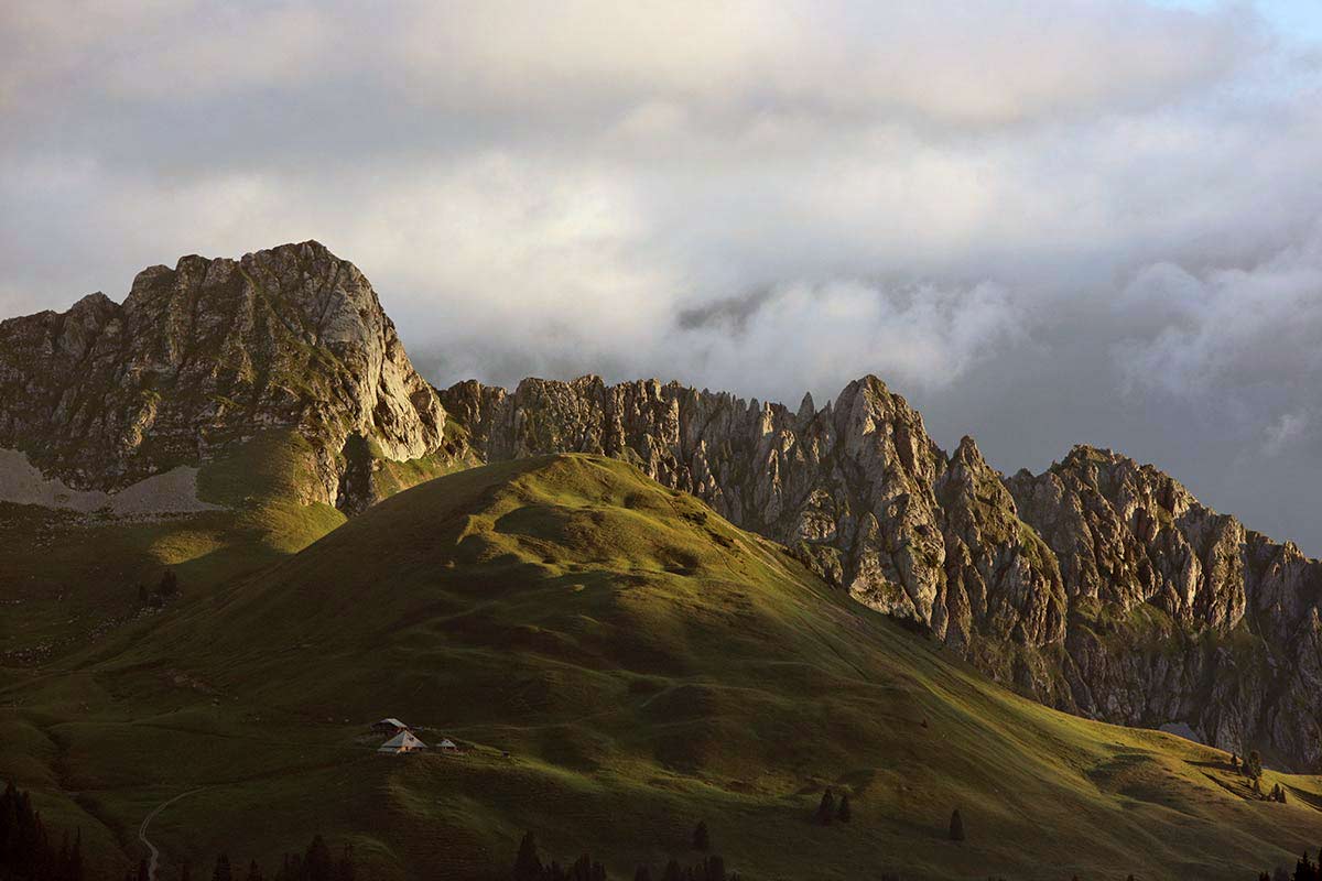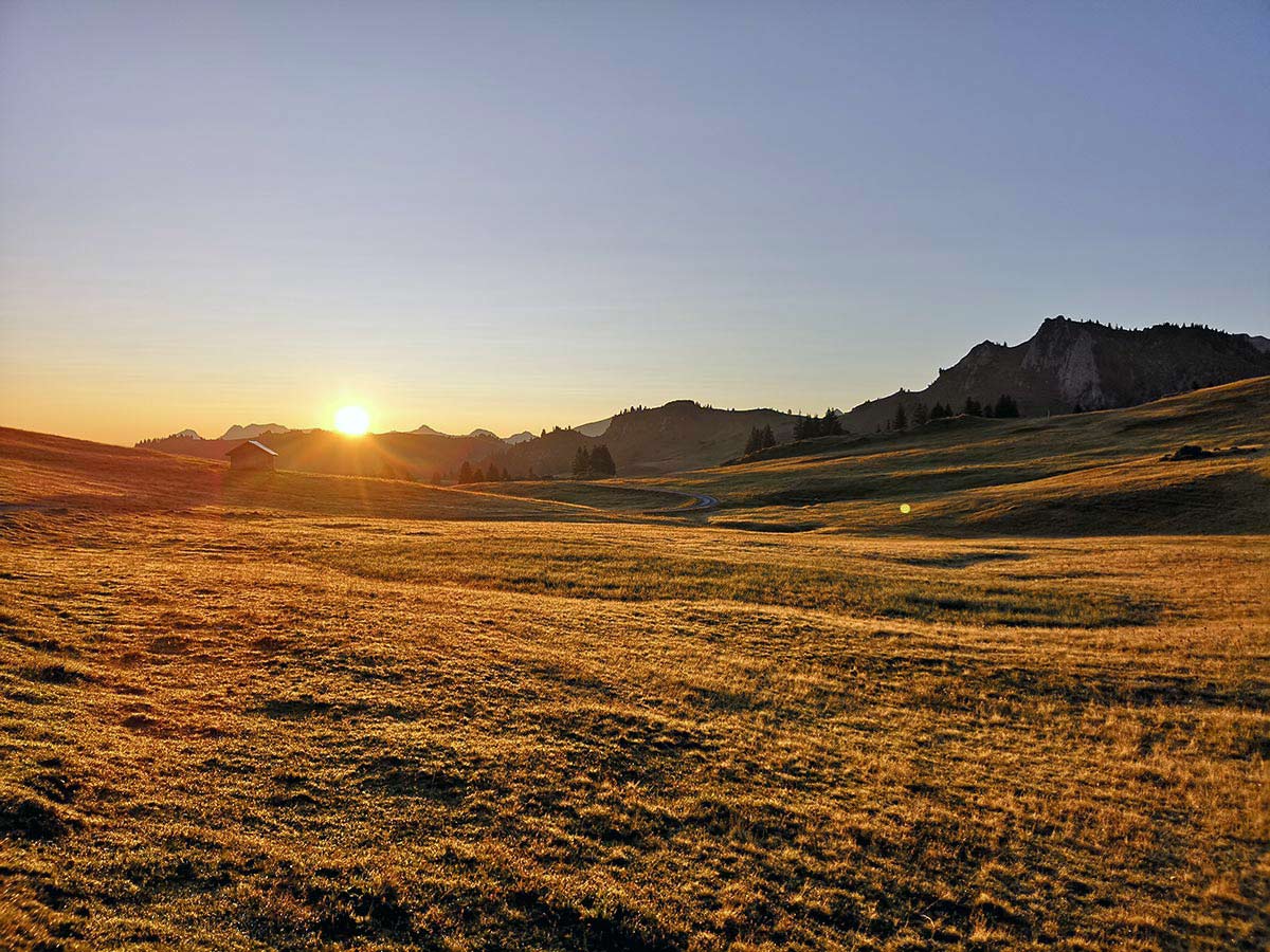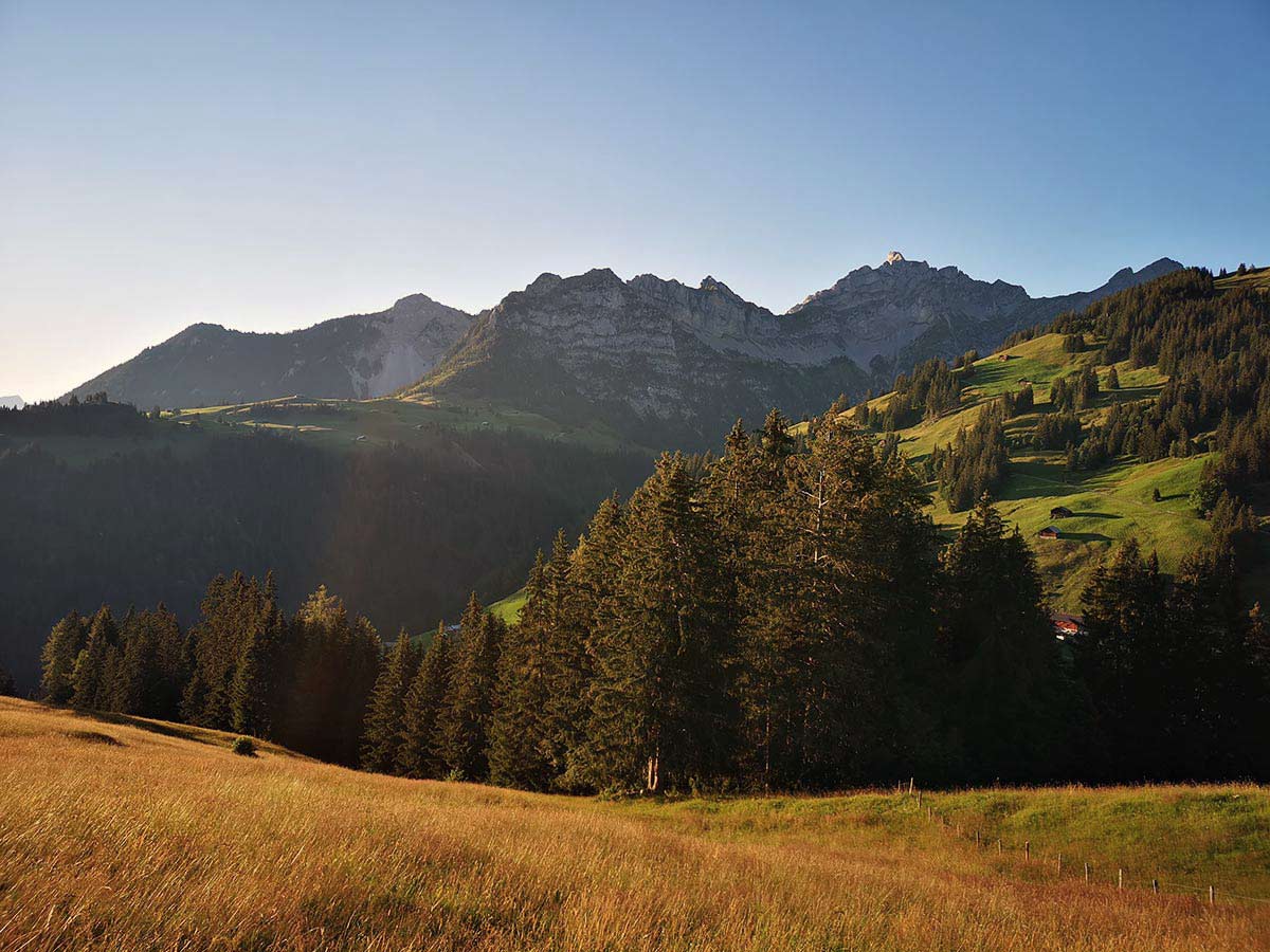 {{query.lg == 'de' ? 'Bei Sonnenaufgang, mit den Gastlosen im Morgenlicht, bereits unterwegs sein.' : '' || query.lg == 'fr' ? 'Au lever du soleil, avec le Gastlosen à la lumière du matin, déjà en route.' : '' || query.lg == 'en' ? 'An early start at sunrise, with the Gastlosen gleaming in the morning light.' : ''}}